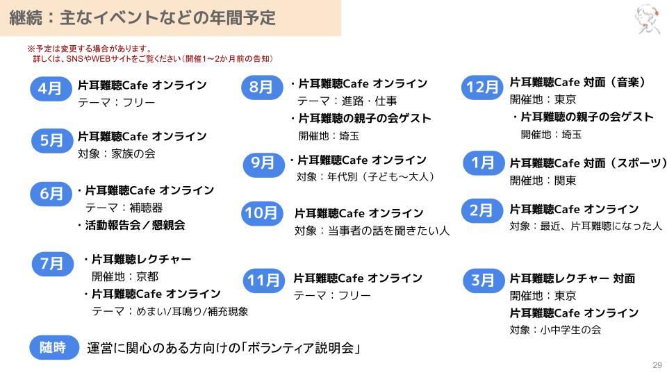 当事者コミュ二ティとして、片耳難聴の本人同士の交流の場をつくることはもちろん、